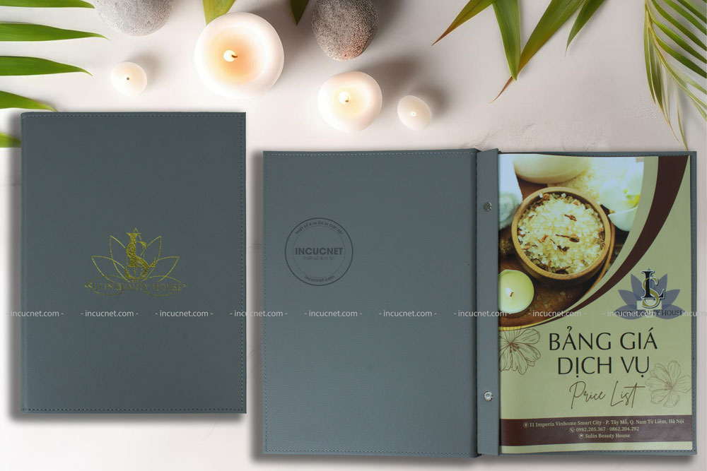 Khi spa của bạn cần tạo ấn tượng mạnh mẽ thì việc đầu tiên là sở hữu ngay cho mình cuốn menu spa bìa cứng sang trọng. Với chất liệu bìa cứng thì menu sẽ trở nên bền bỉ, chắc chắn giúp bảo vệ menu spa trong thời gian dài sử dụng.