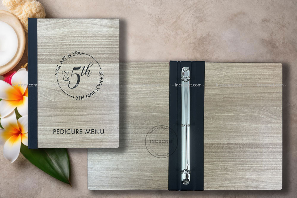 Menu spa bìa cứng đại diện cho sự vững chắc và sang trọng
