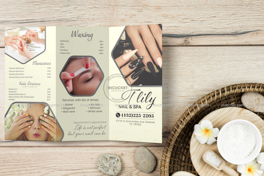 Vì thế hãy chắc chắn làm nổi bật điều này khi thiết kế trước khi chốt in menu spa
