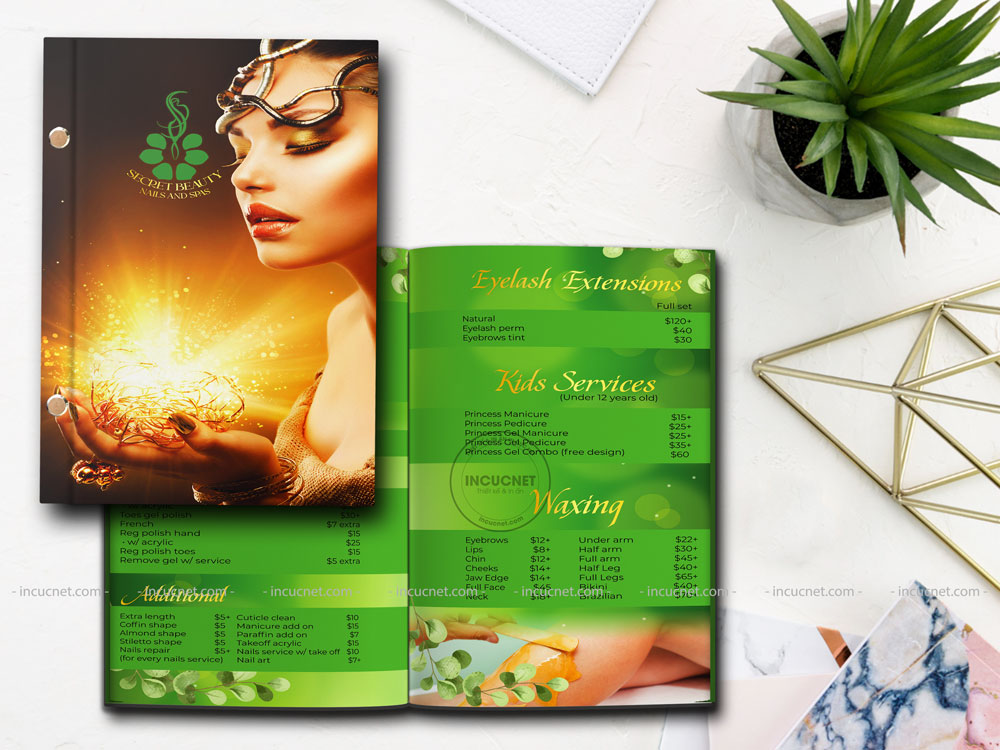 Thiết kế menu spa độc đáo, hấp dẫn, thú vị và có giá trị để tiếp cận khách hàng, giúp khách hàng hiểu rõ về các dịch vụ spa có sẵn.