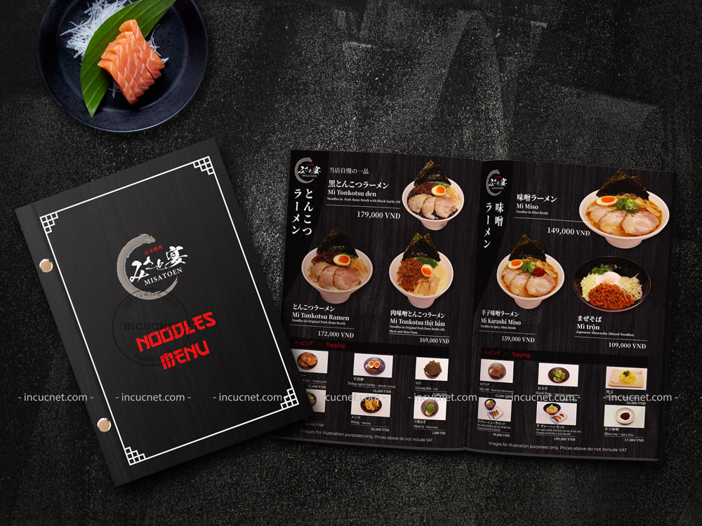 Menu là nổi bật trải nghiệm của mỗi khách hàng khi đến cửa hàng. Mỗi chi tiết đều được chú ý và tôn lên, từ chất liệu giấy cho đến cách sắp xếp và trình bày hình ảnh và văn bản.