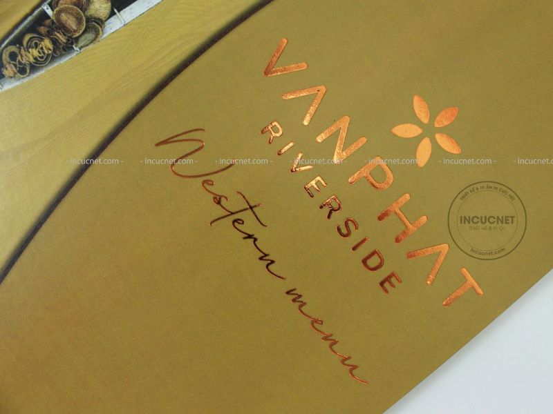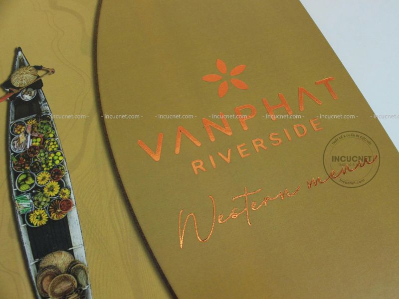 Menu bìa da thường được in ép kim, dập nổi logo…