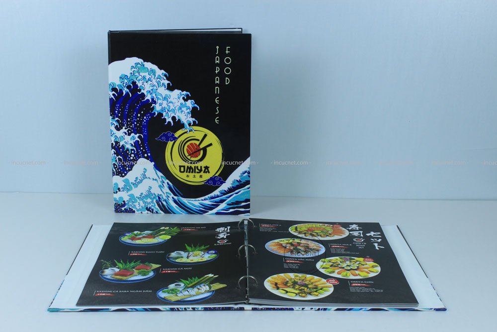 Menu OMIYA là một thực đơn được sử dụng tại nhà hàng OMIYA. Được làm từ bìa cứng và có gáy còng kim loại để giữ các trang lại với nhau. Menu này được thiết kế để bền bỉ và dễ sử dụng. Phù hợp với môi trường nhà hàng. Menu OMIYA bìa cứng gáy còng có thể được coi là một phần bộ nhận diện thương hiệu của nhà hàng.