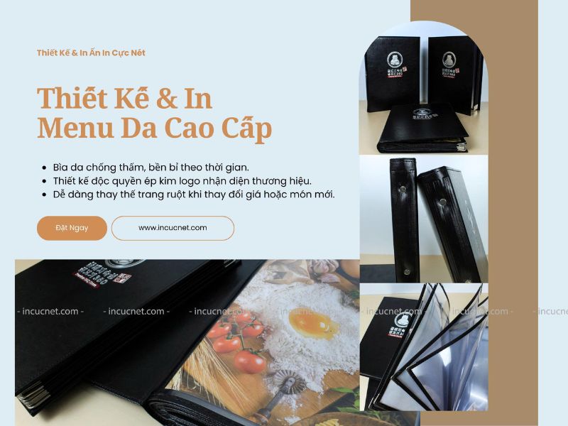 Bạn đang khát khao sở hữu một mẫu menu độc đáo và đẳng cấp, không cần phải lo lắng về sự bền bỉ. In Cực Nét xin giới thiệu cho bạn mẫu menu da, đáp ứng hoàn toàn đầy đủ mọi mong muốn của bạn, từ thiết kế đến độ bền.