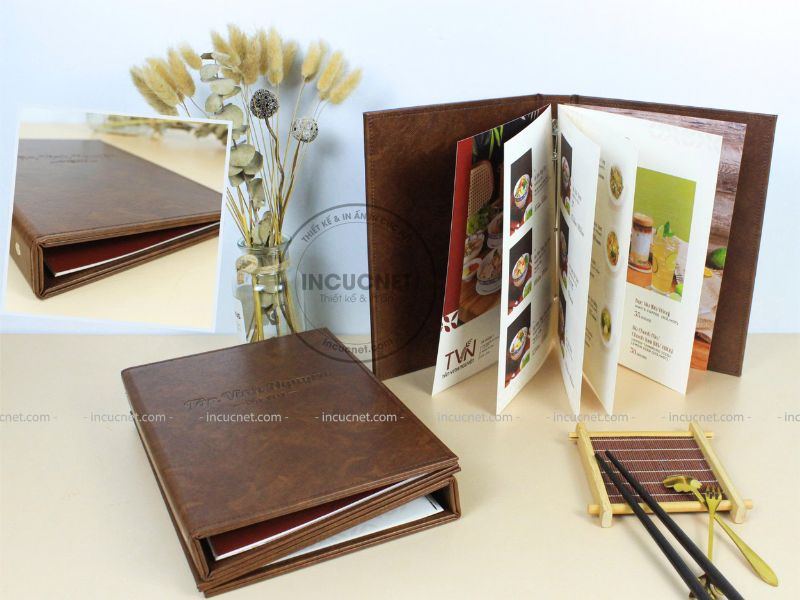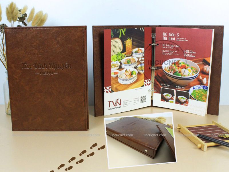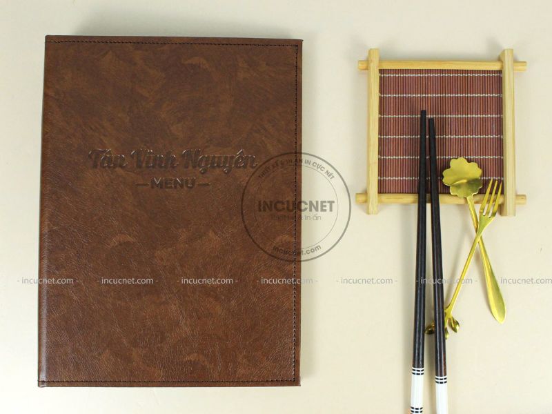 Chúng ta hiểu tâm lý của khách hàng, và đó là lý do tại sao nhiều nhà hàng thiết kế menu thực đơn bắt mắt với bìa da làm điểm nhấn quan trọng đầu tiên.