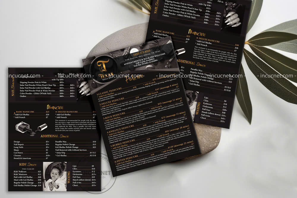 Tuyển Tập Mẫu Menu Nails Gập Đôi Đẹp Mắt, Sang Trọng