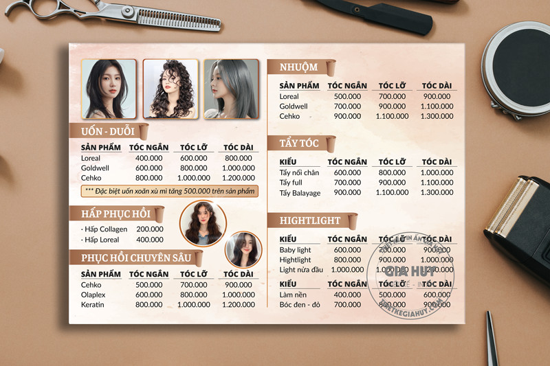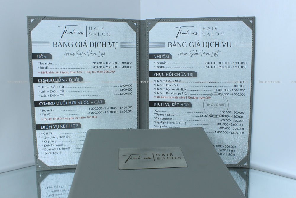 Dịch vụ in menu salon tóc của Thiết Kế In Cực Nét