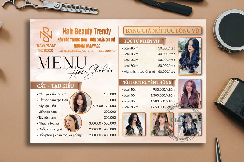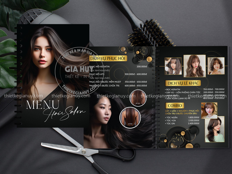 Đa số khách hàng của hair salon là nữ giới. Vì vậy menu chỉ đẹp thôi là chưa đủ. Nó còn là sự tinh tế, ấn tượng giúp thu hút người nhìn.