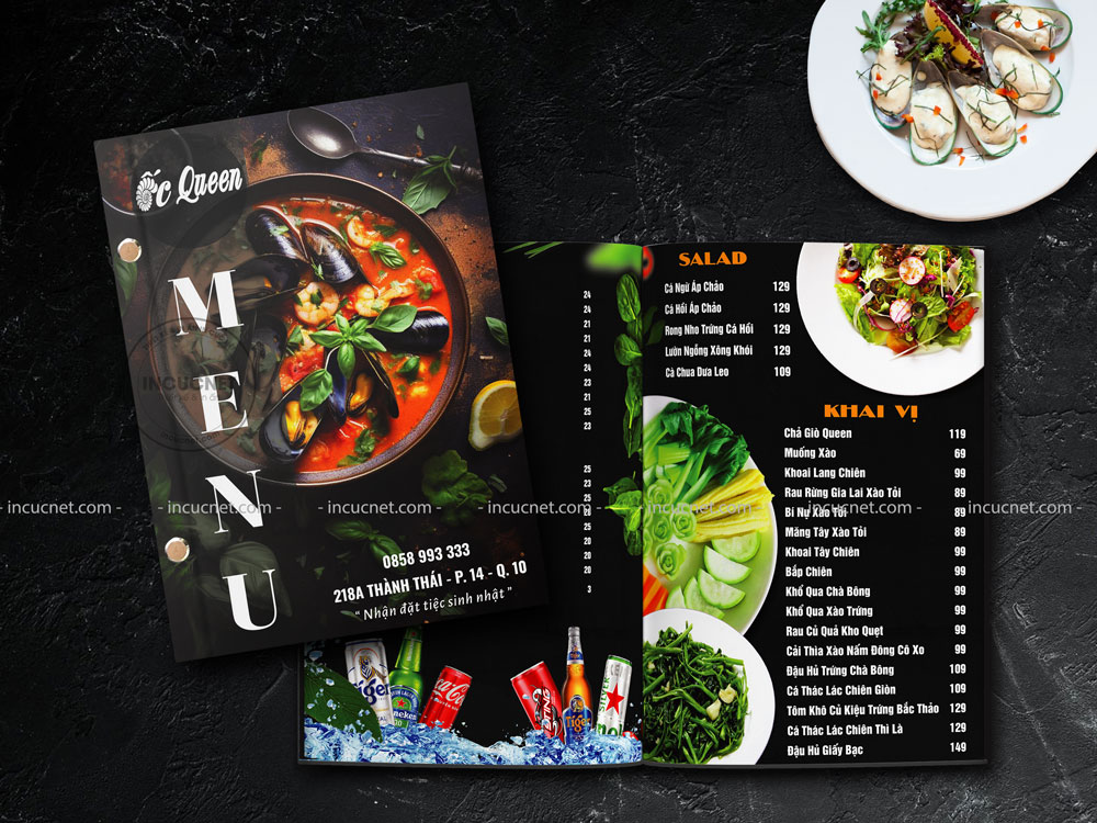 Việc sử dụng các phương pháp như dán keo gáy, ghim, lò xo, hay khoen… Đảm bảo menu sẽ không bị rách, xúc rớt tờ, bong tróc hay hỏng hóc. Menu được đóng cuốn một cách chắc chắn và bền vững, giúp menu hoàn thiện và sẵn sàng phục vụ khách hàng.